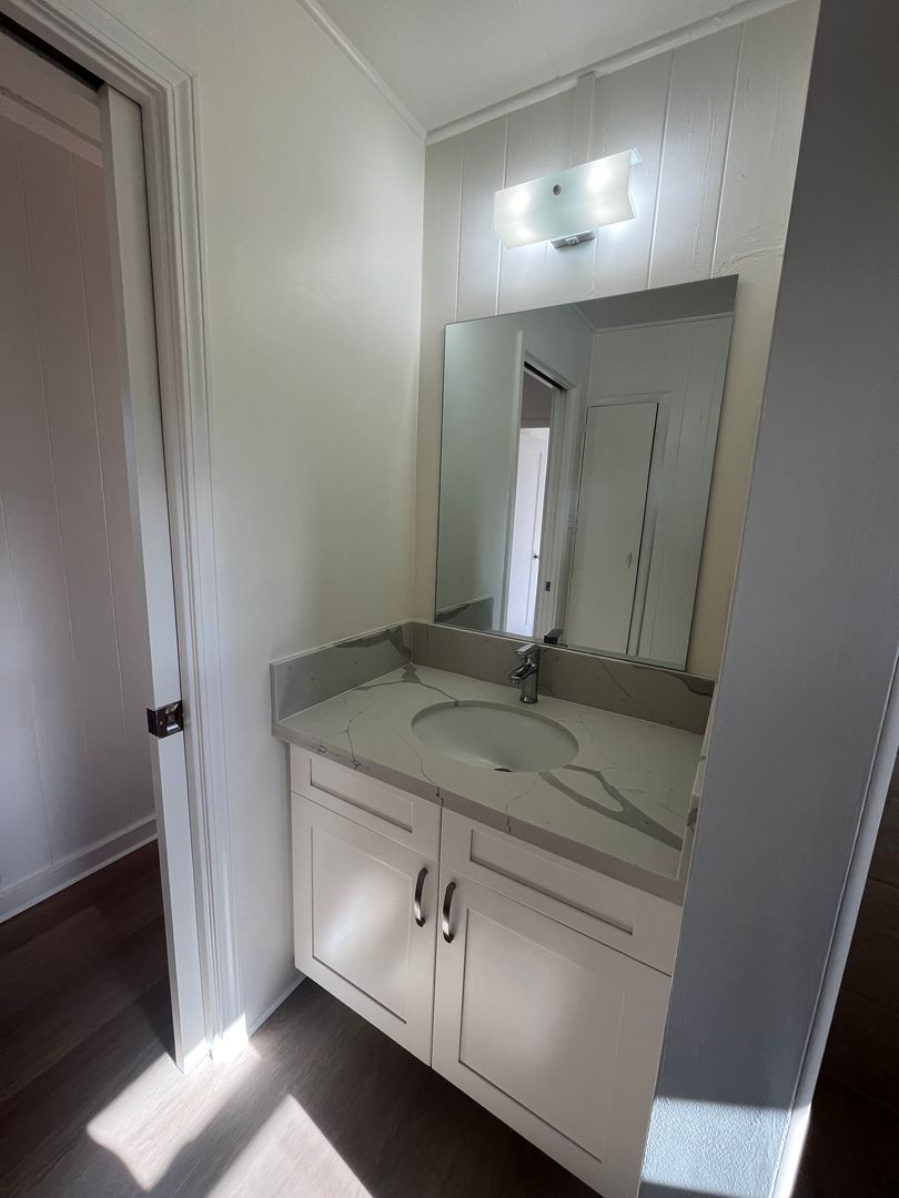 -New laminate flooring in living room and bedrooms, kitchen cabinets, interior painting, granite countertops, and bathroom