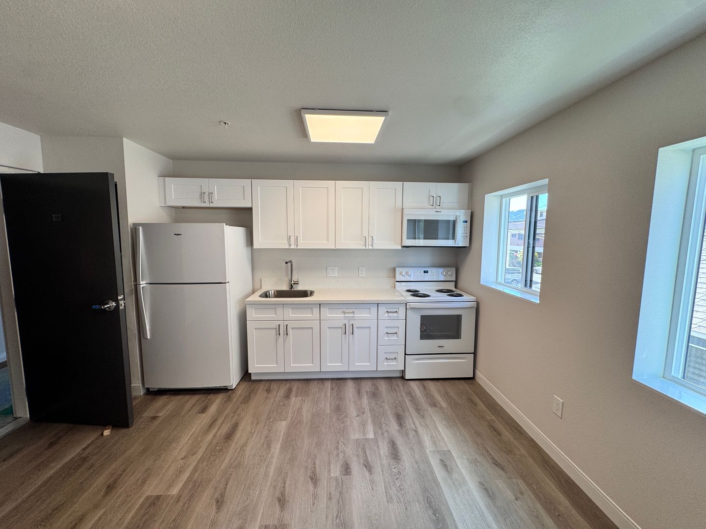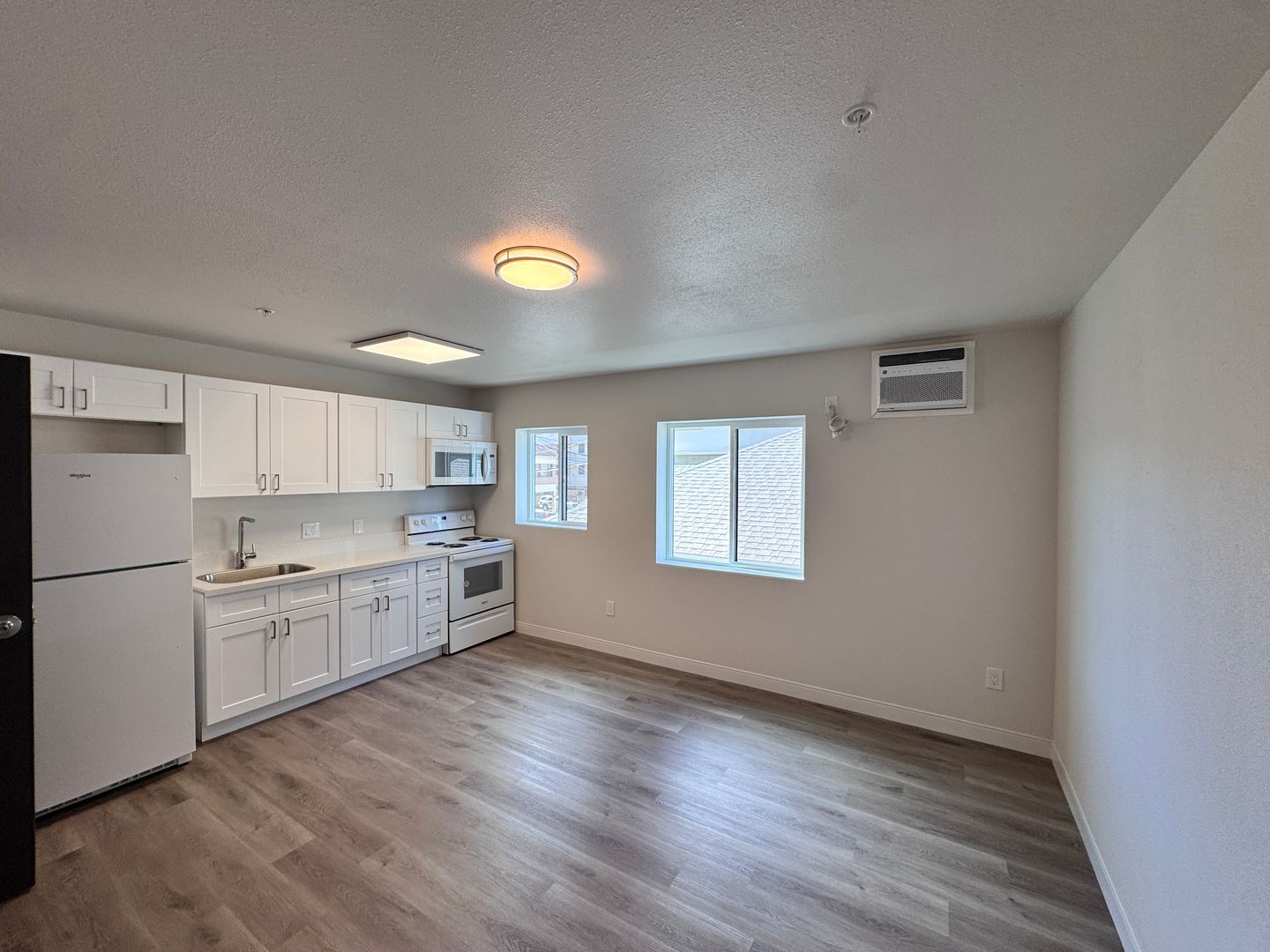 -Brand new appliances: Refrigerator, Stove/Oven, Microwave, Window AC
