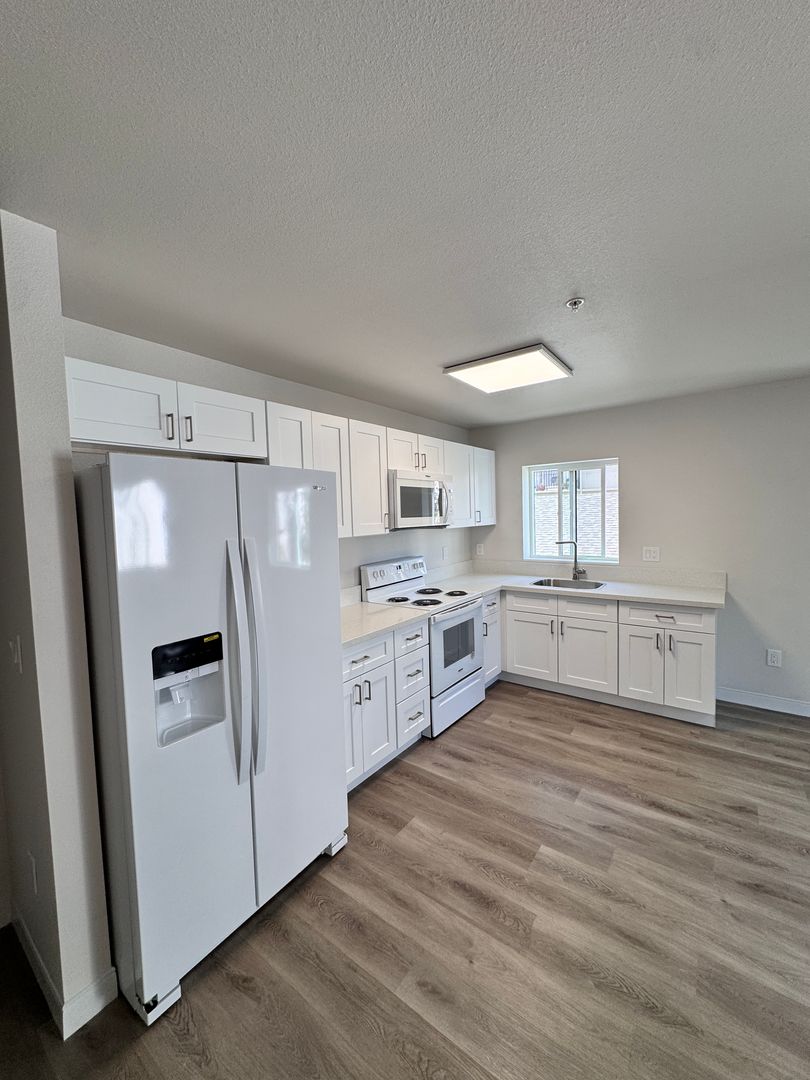 -Brand new appliances: Refrigerator, Stove/Oven, Microwave, Window AC